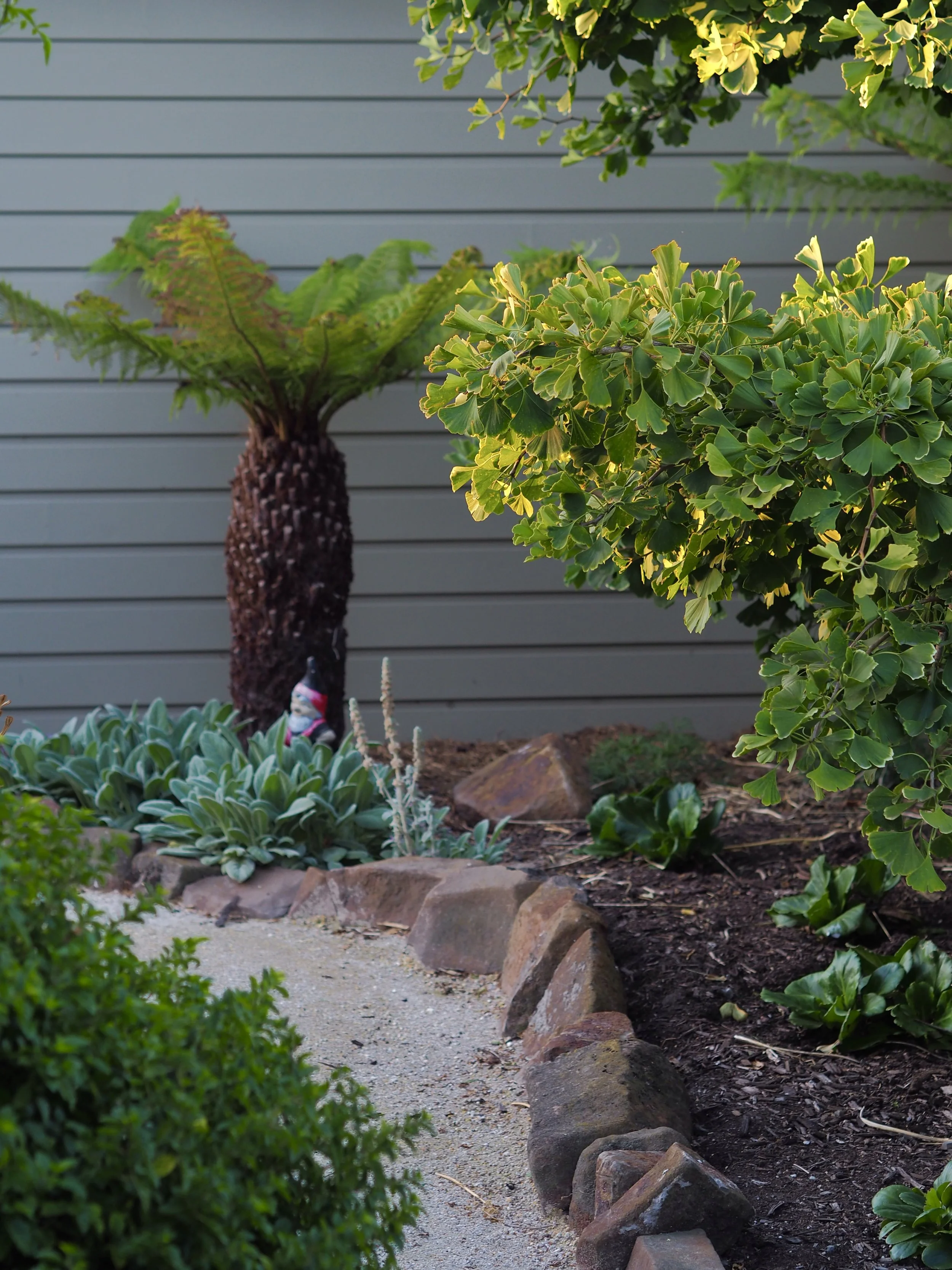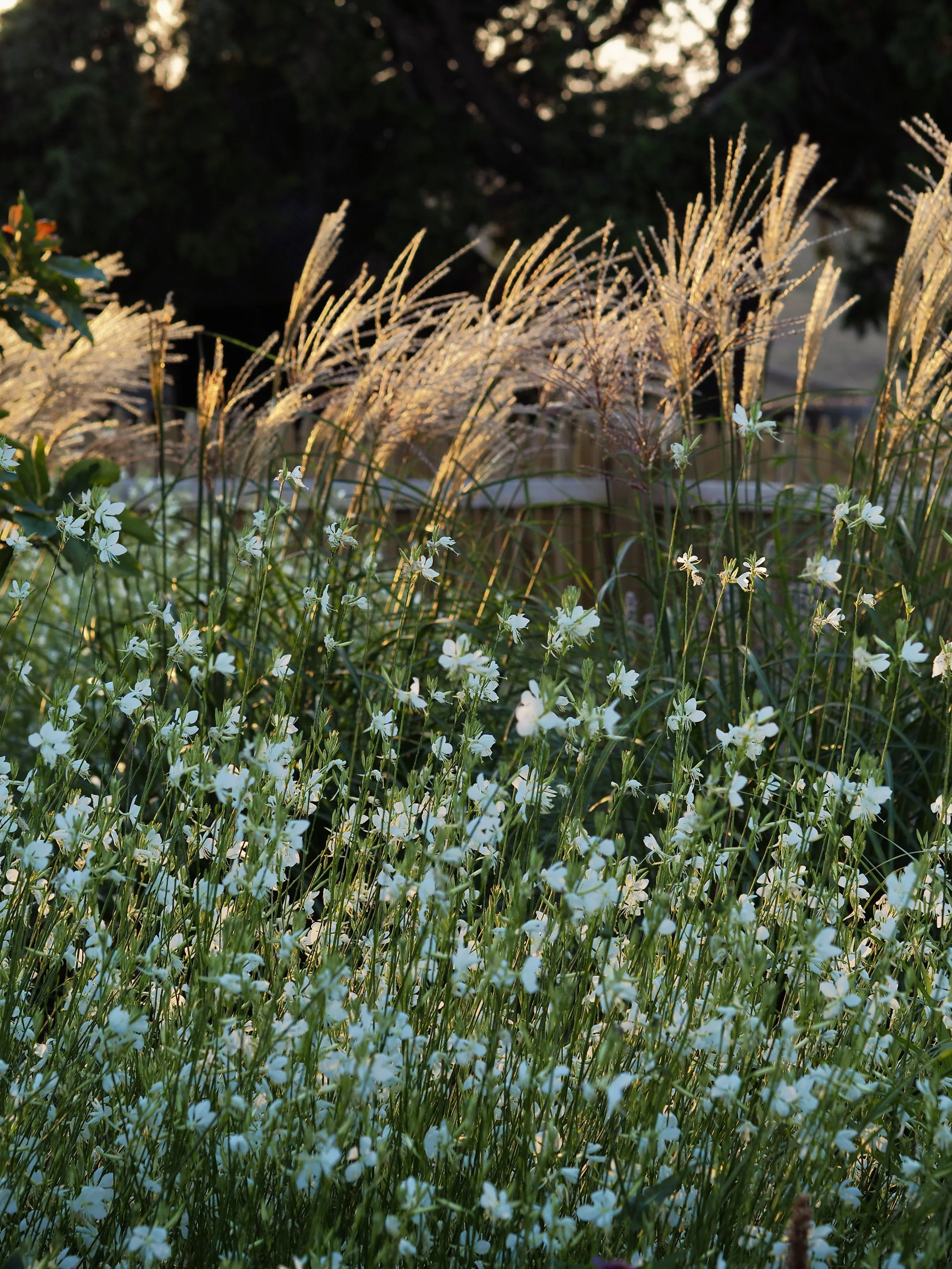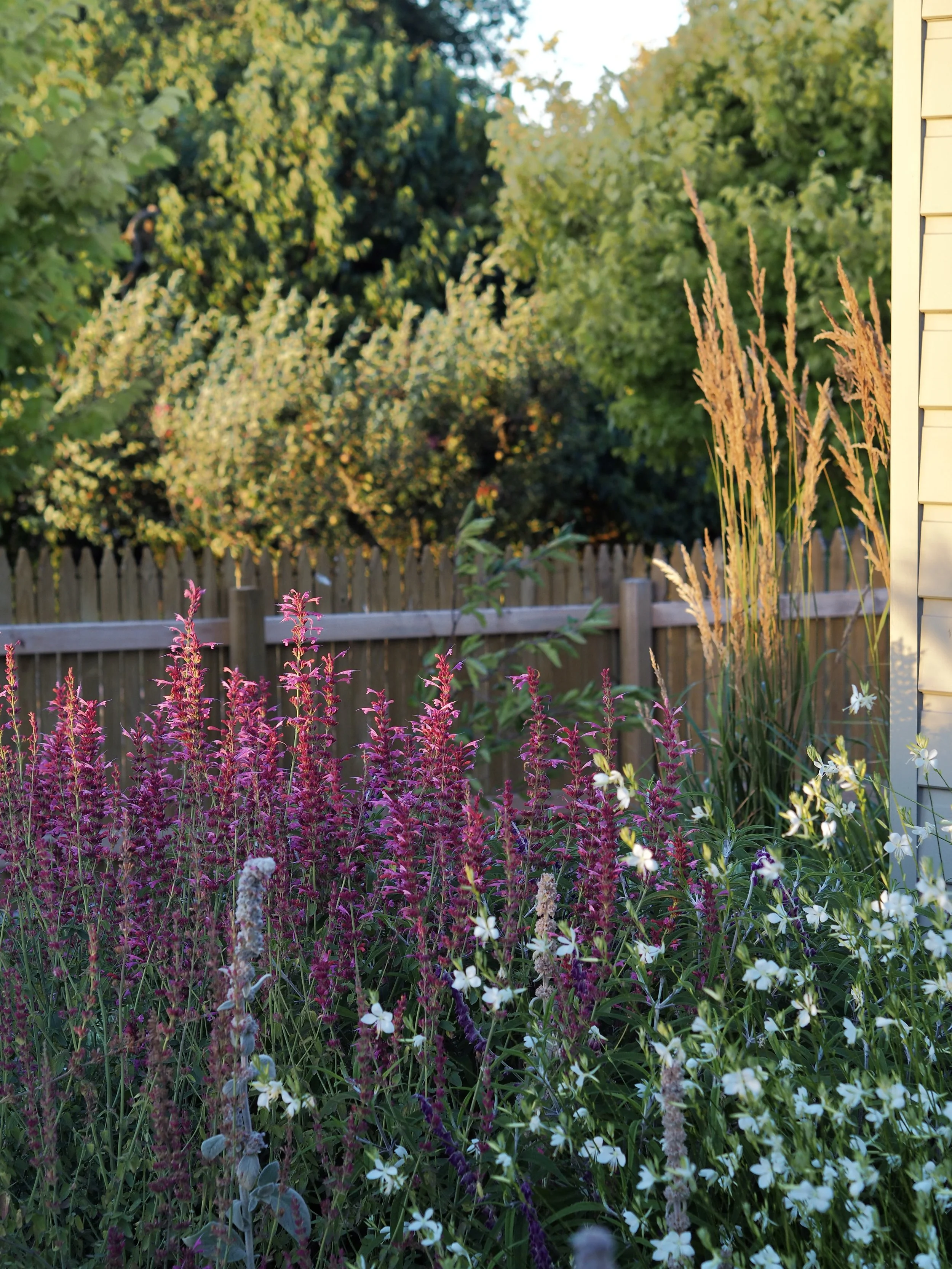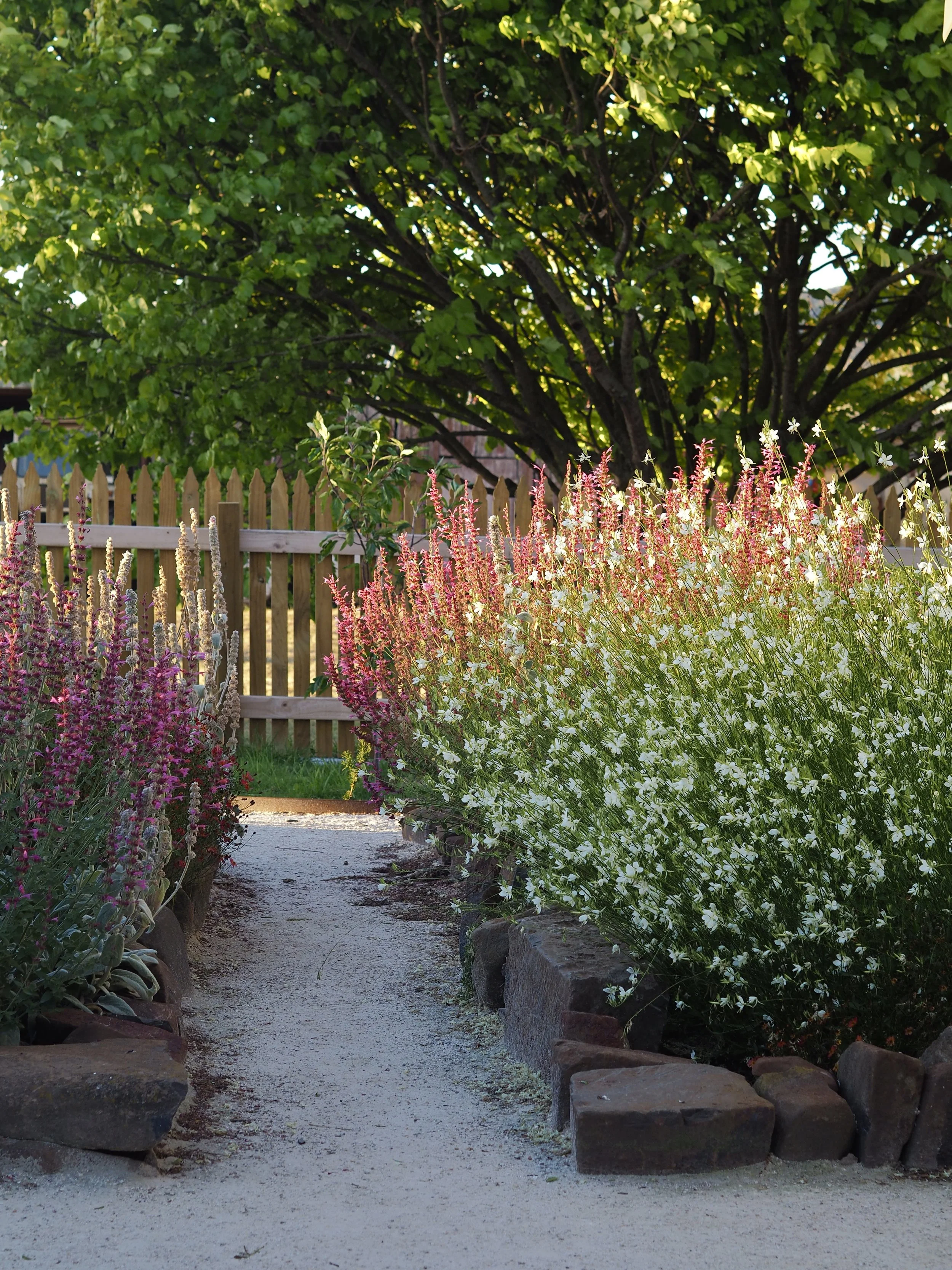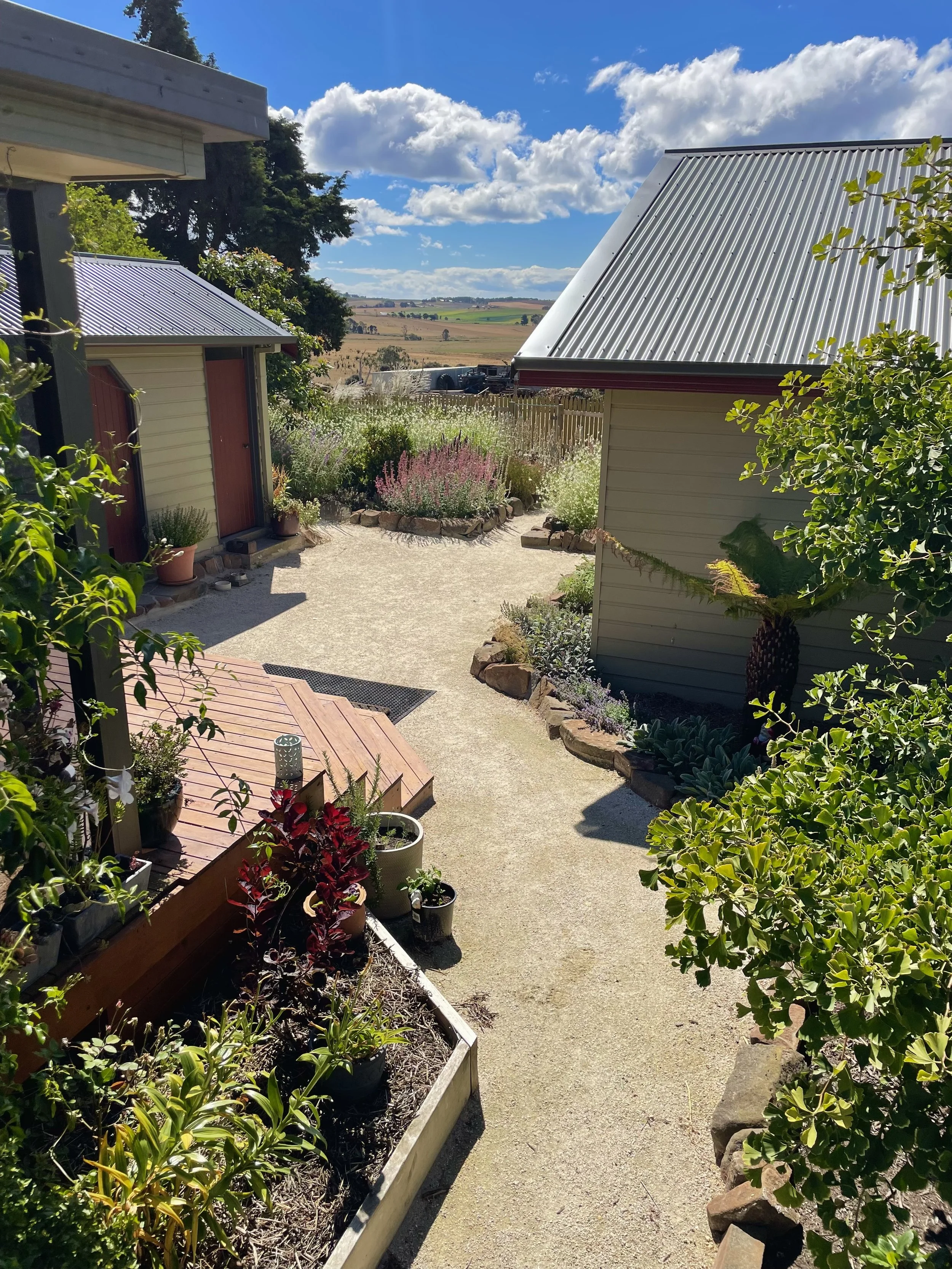 A new garage construction created an opportunity to redesign an under-utilised space into an inviting entry garden and courtyard for this farmhouse on a hill. Removing an old existing paling fence and pushing the boundary out into the farm yard has brought the spectacular views of the surrounding landscape into the garden, which features a mix of long flowering, tough perennials and ornamental grasses, espaliered crab apples, a herb garden and stone garden edging that was salvaged and reconfigured from the old garden